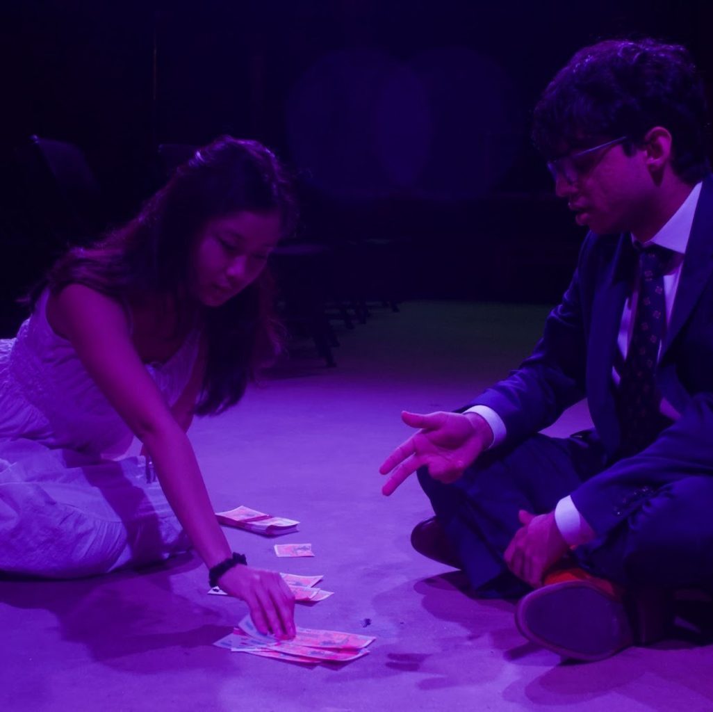 The supporting cast of traders and consultants prop up the play’s strong momentum. Brimming with feverish energy, the comedic relief from their exaggerated macho, balances the play’s heavier beats. A highlight was the physical acting of the raptors, who were contorting ferally up and down the round. Watching on closing night also meant getting the privilege of seeing the actors ‘coked-out’ on improv, kissing passionately under the blaring lights as the employees go on a trading spree.