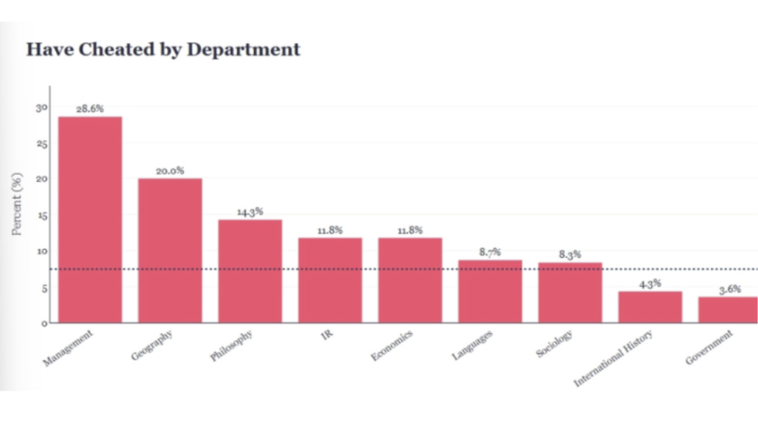 Management returned the highest proportion of self-proclaimed cheaters, at a pretty significant 29%. So consider yourselves warned.